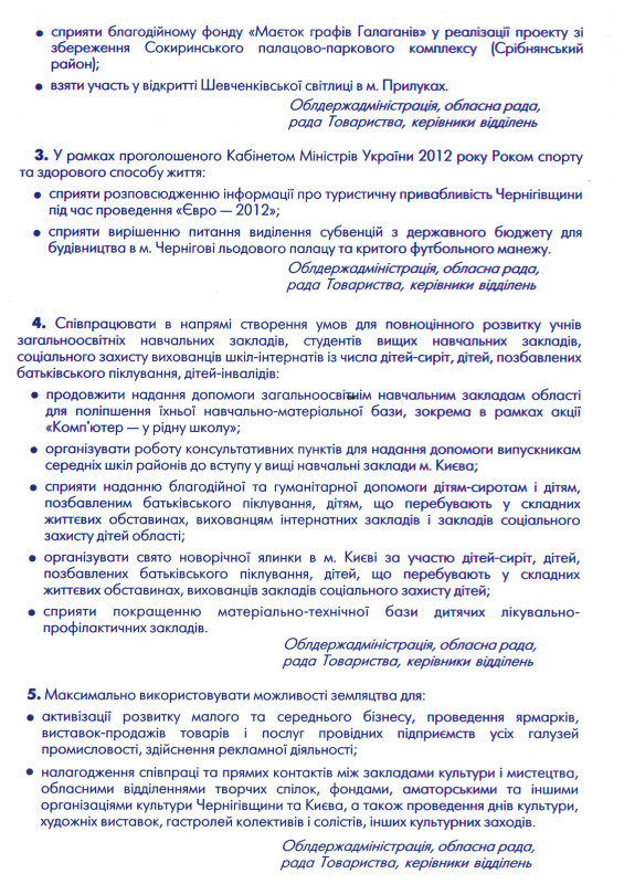 <em>Угода про співпрацю Чернігівської обласної держадміністрації, Чернігівської обласної ради, Ради товариства «Чернігівське земляцтво» в Києві на 2012 рік</em>